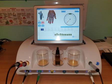 How the therapy performed? In practice, the therapy requires the patient to contact 4 metal electrodes: 2 with hands and 2 with feet. The electrodes are usually gold-plated for a better contact quality. Initially the practitioner would measure 40 acupuncture points on the patient’s body (20 on hands and 20 on feet). The machine then reads electronic measurements from 4 main body sectors through the contact electrodes. And finally, the therapist analyses the measurements and chooses therapy programmes appropriate for the patient (the programmes are pre-installed in the machine memory).
